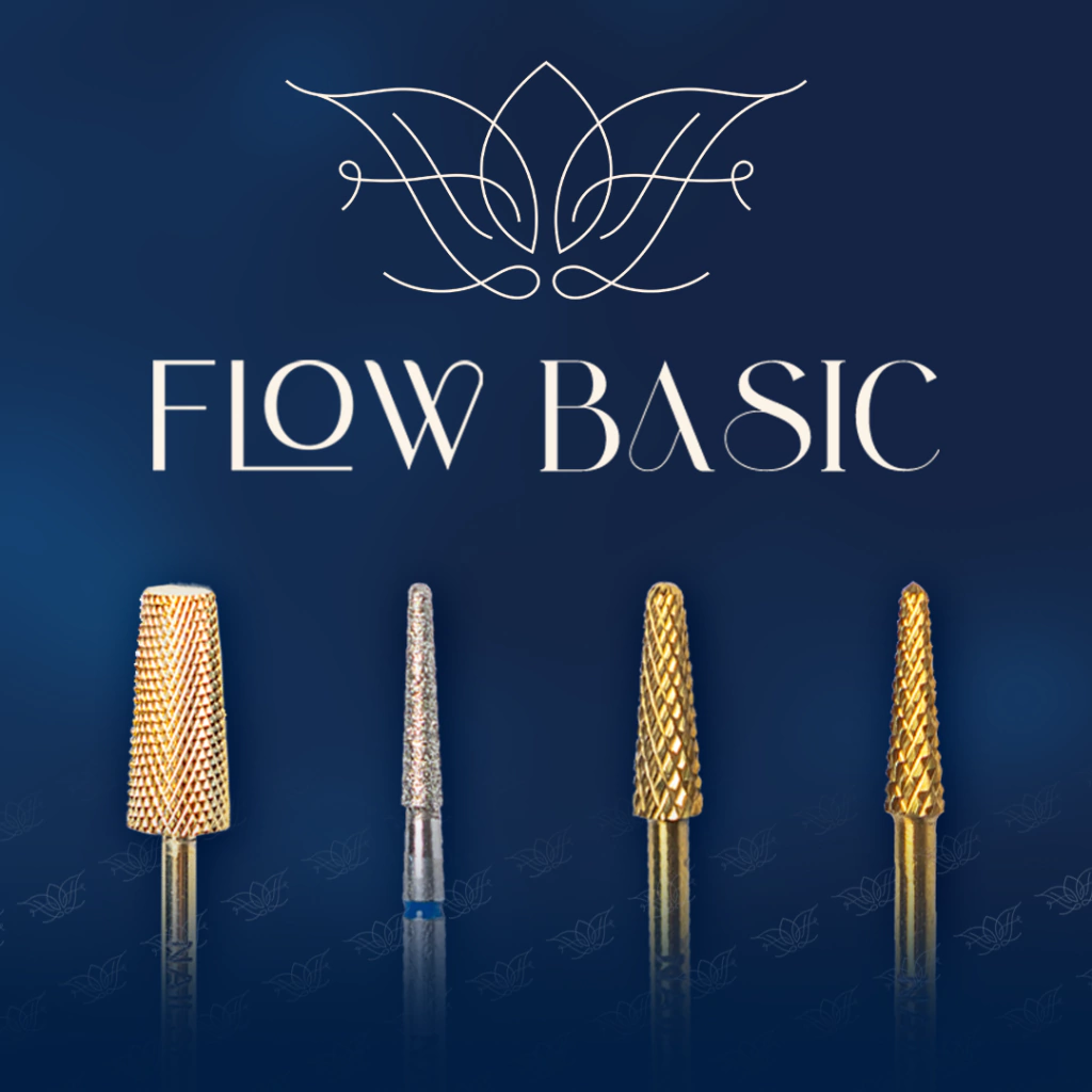 O kit é composto por 4 brocas: Remoção, Diamantada, Acabamento Slim e Área da cutícula.